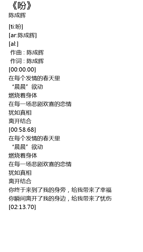 | [00:00.00] | zuò qǔ : chén chéng huī |