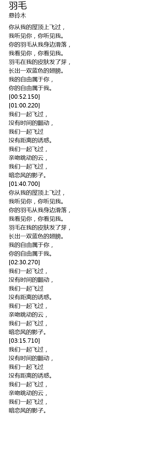 | [02:05.140] | 你的羽毛从我身边滑落, |