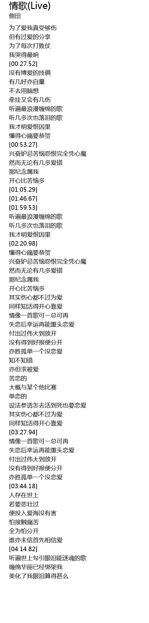 | [03:29.76] | qíng xiàng yī shǒu gē kě yī zǒng kě zài |