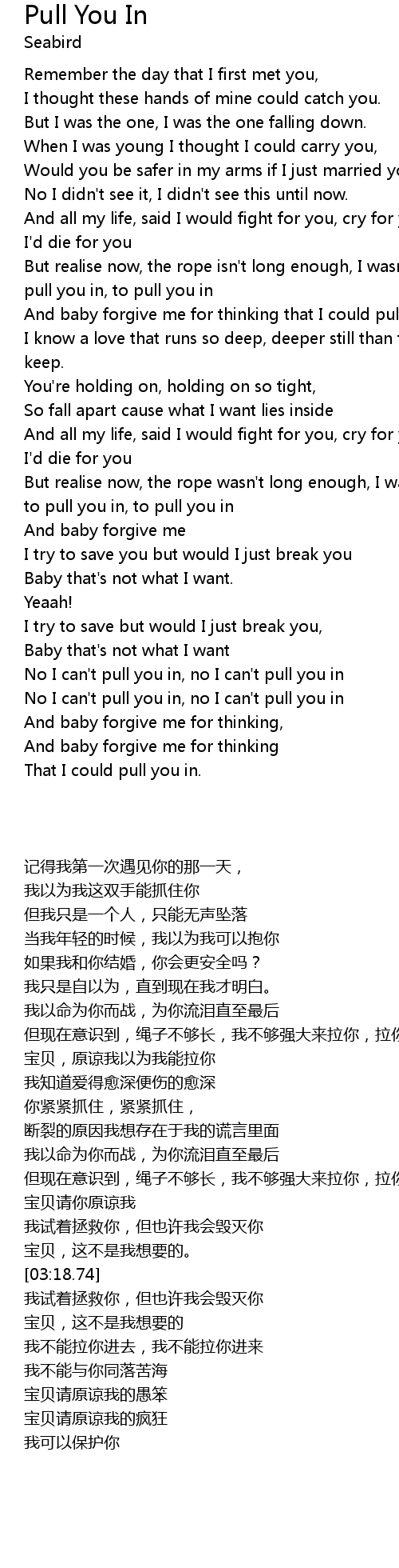 But realise now, the rope isn't long enough, I wasn't strong enough to pull you in, to pull you in |