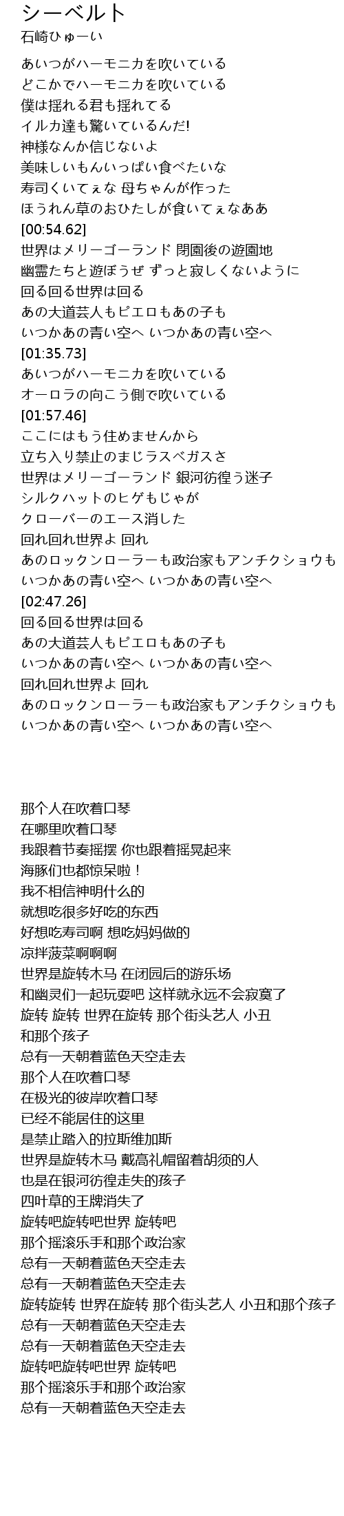 | [00:20.33] | どこかでハーモニカを吹いている |