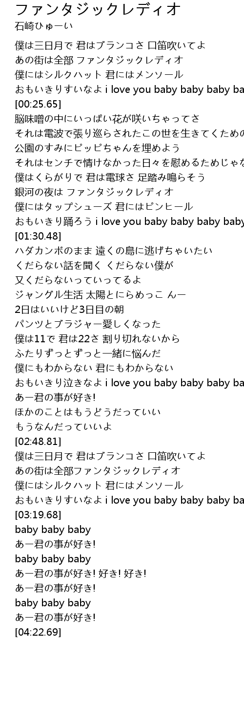 | [00:19.08] | おもいきりすいなよ i love you baby baby baby baby baby |