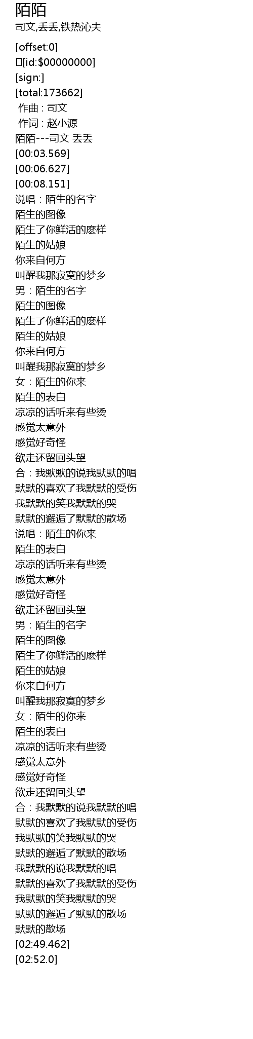 | [00:01.12] | 陌陌---司文 丢丢 |