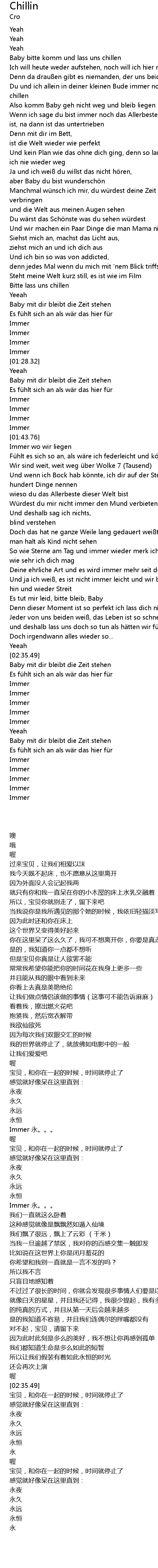 | [00:30.82] | Baby bitte komm und lass uns chillen |
