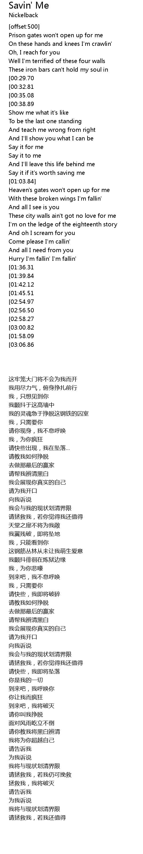 | [03:12.48][03:00.82][01:53.81] | Say it if it's worth saving me |