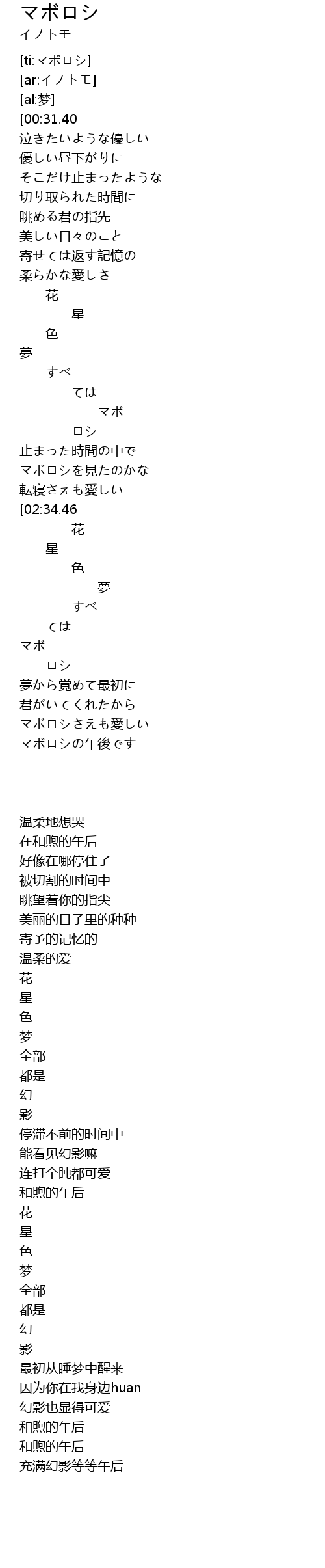 | [02:44.95] | マボロシの午後です |