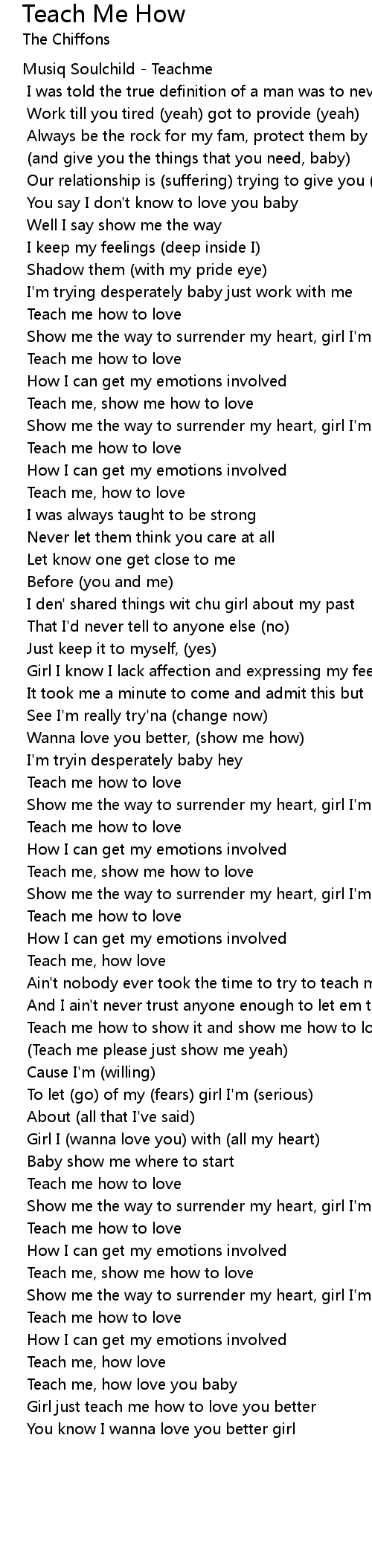 Teach me how to show it and show me how to love you baby
