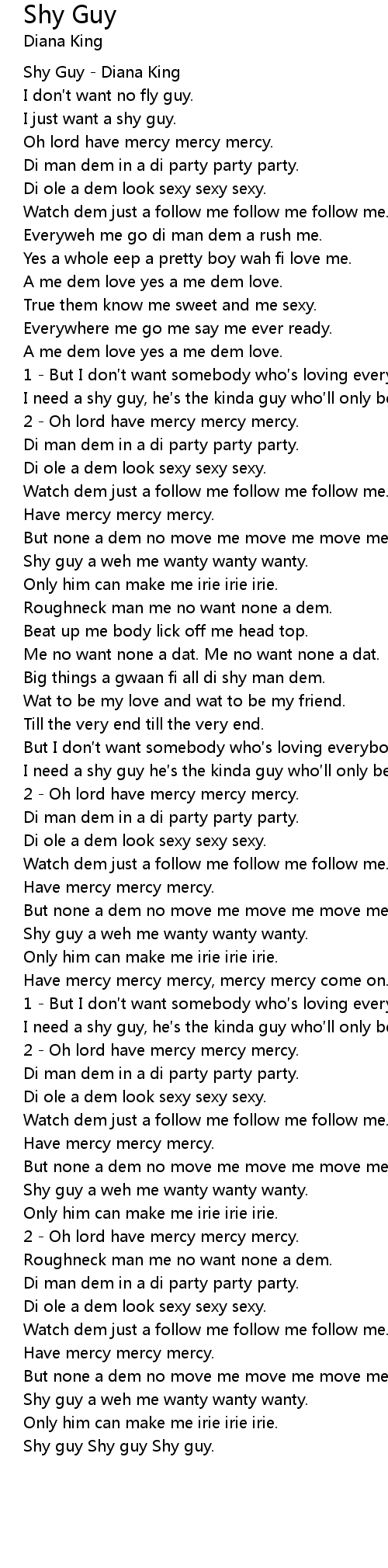 | [02:47.72] | I need a shy guy, he′s the kinda guy who′ll only be mine. |