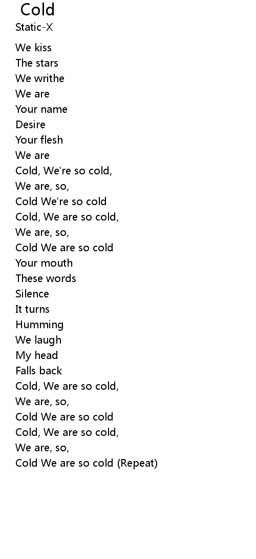 | Cold We are so cold (Repeat) |
