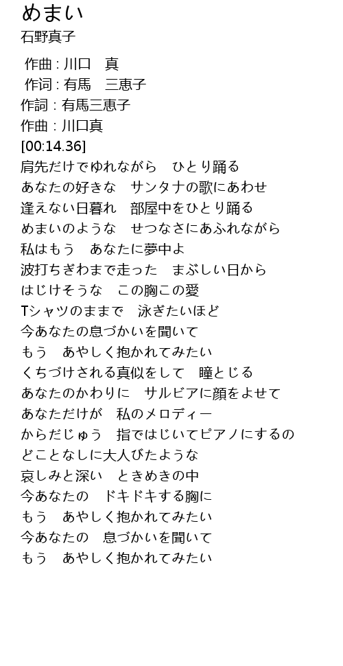 | [02:44.33] | もう あやしく抱かれてみたい |