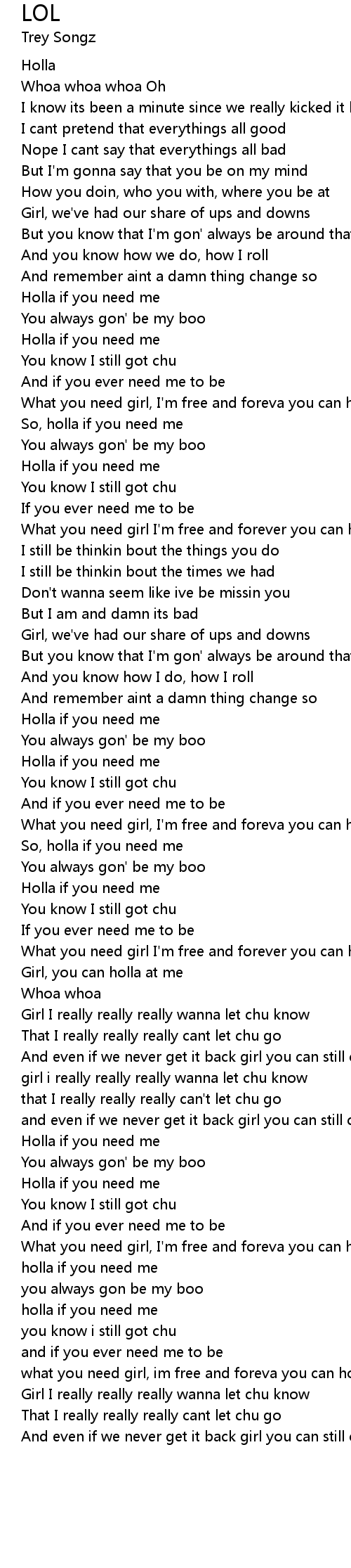 what you need girl, im free and foreva you can holla at me
