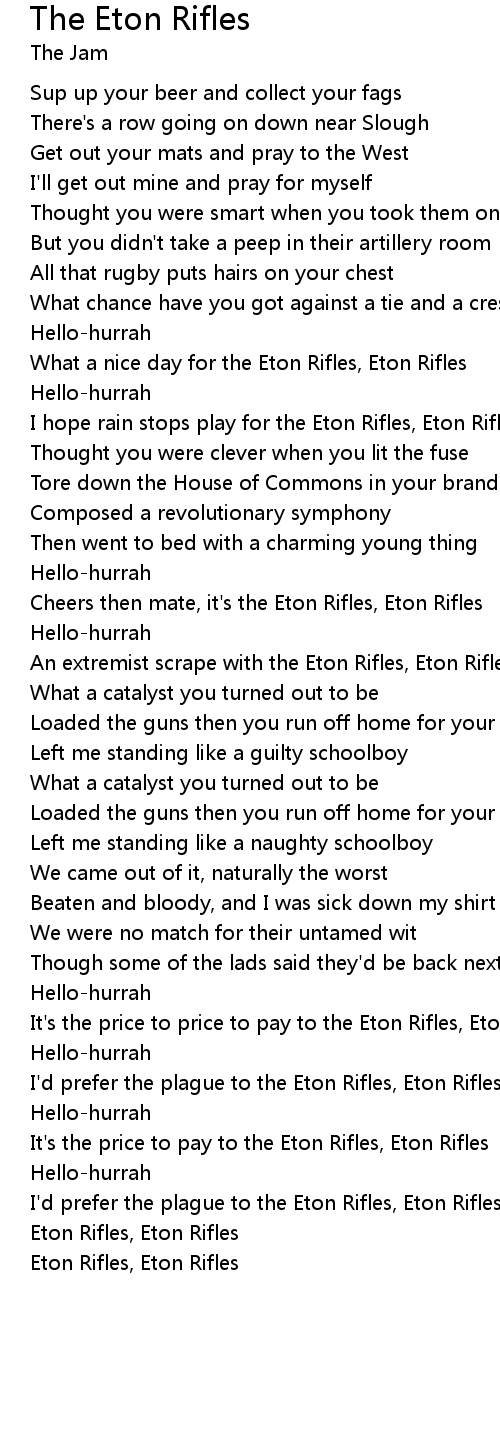 Cheers then mate, it's the Eton Rifles, Eton Rifles