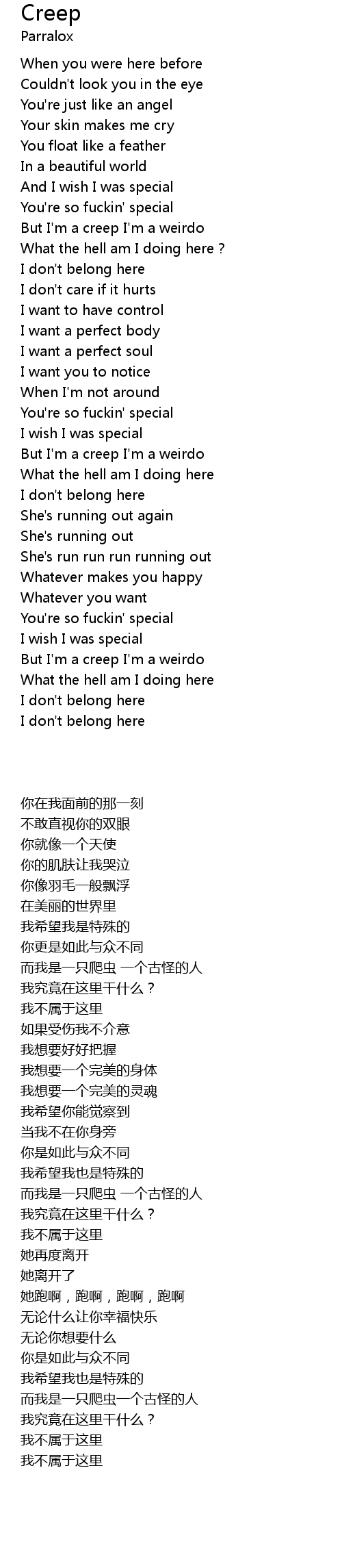 | [03:25.810] | But I'm a creep I'm a weirdo |