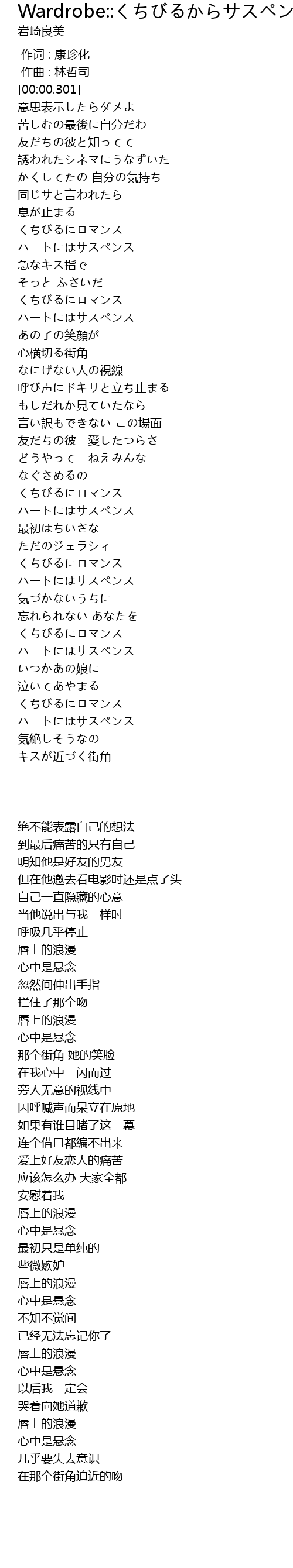 | 歌曲 | Wardrobe::くちびるからサスペンス |