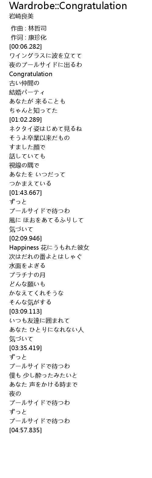 | 歌曲 | Wardrobe::Congratulation |