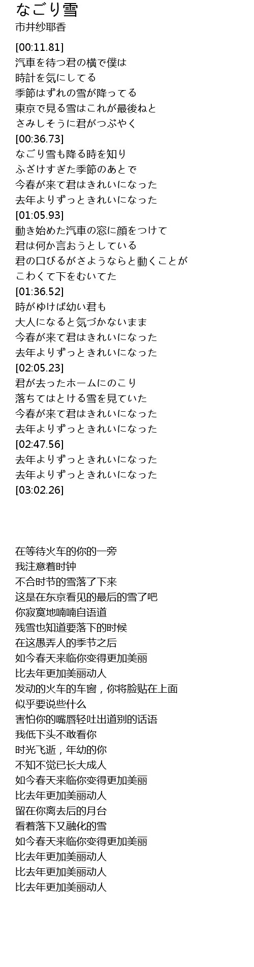 | [00:38.45] | なごり雪も降る時を知り |
