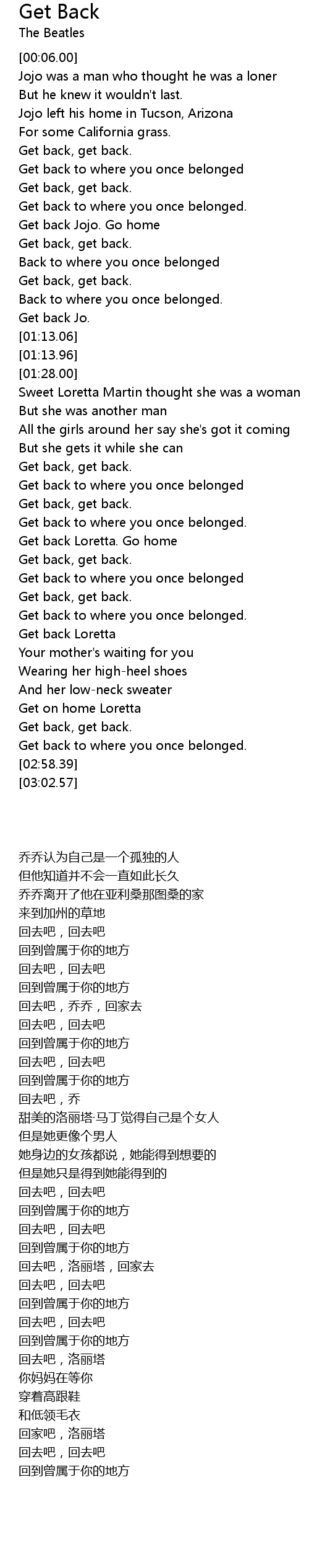 Get back to where you once belonged |