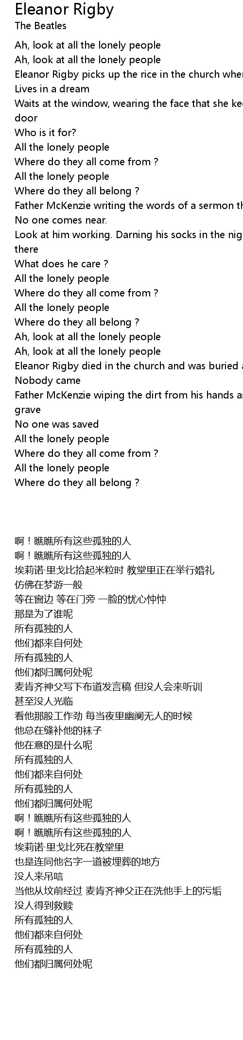 Ah, look at all the lonely people |