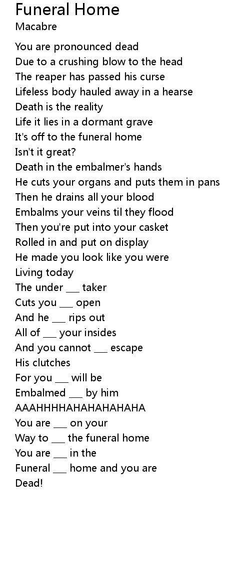 | Funeral ___ home and you are | |