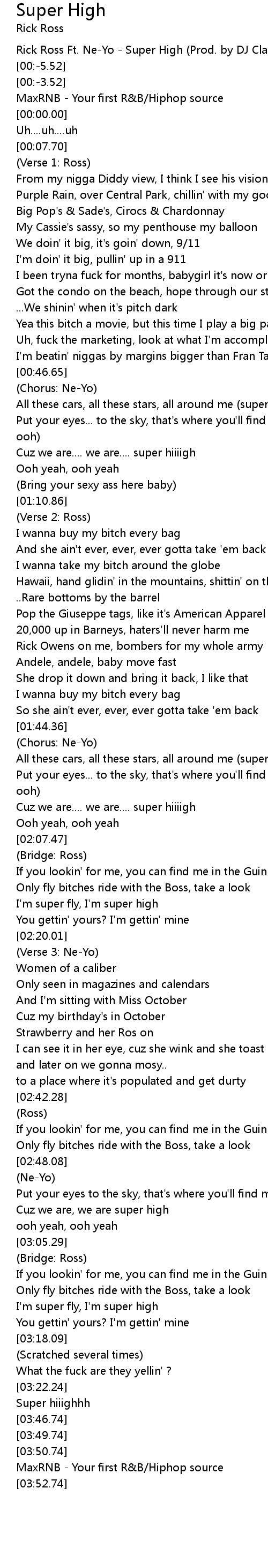 Rick Ross Ft. Ne-Yo - Super High (Prod. by DJ Clark Kent & The Remedy) |