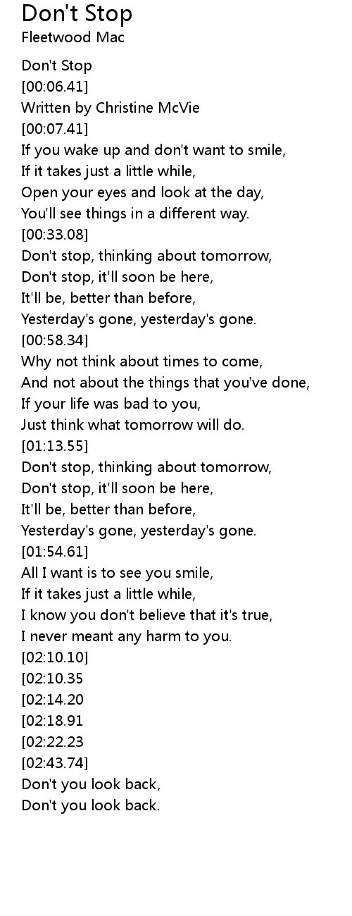 Don't stop, thinking about tomorrow, |