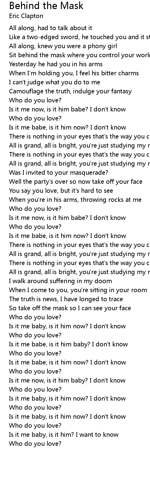 So take off the mask so I can see your face |