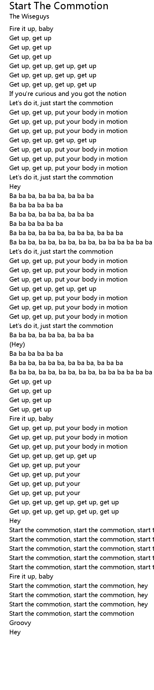 Start the commotion, start the commotion, start the commotion |