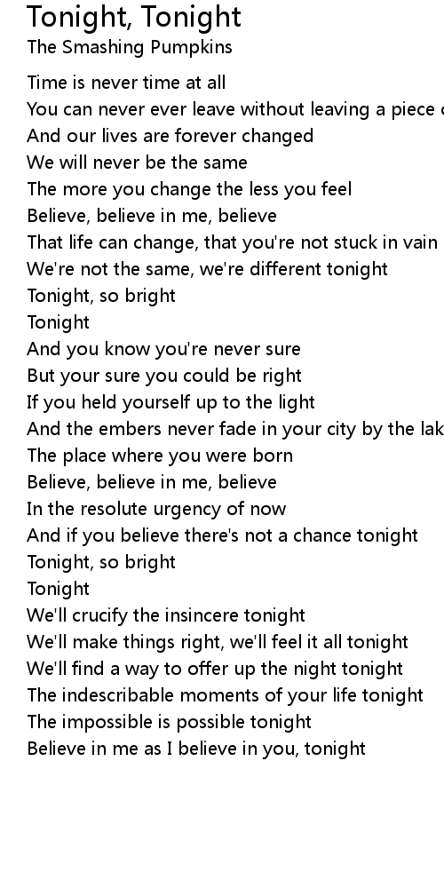 Tonight, Tonight 歌词