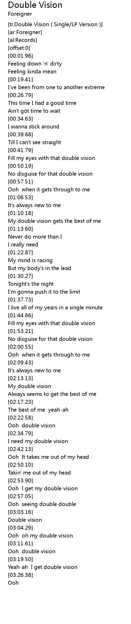 [ti:Double Vision ( Single/LP Version )] |