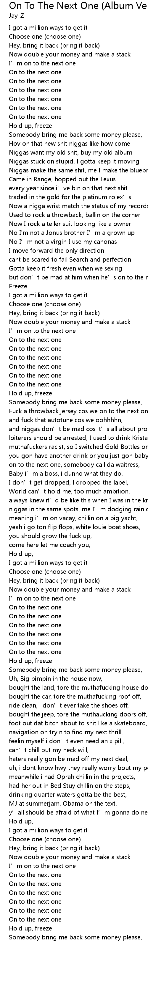 | [01:42.41] | Fuck a throwback jersey cos we on to the next one, |