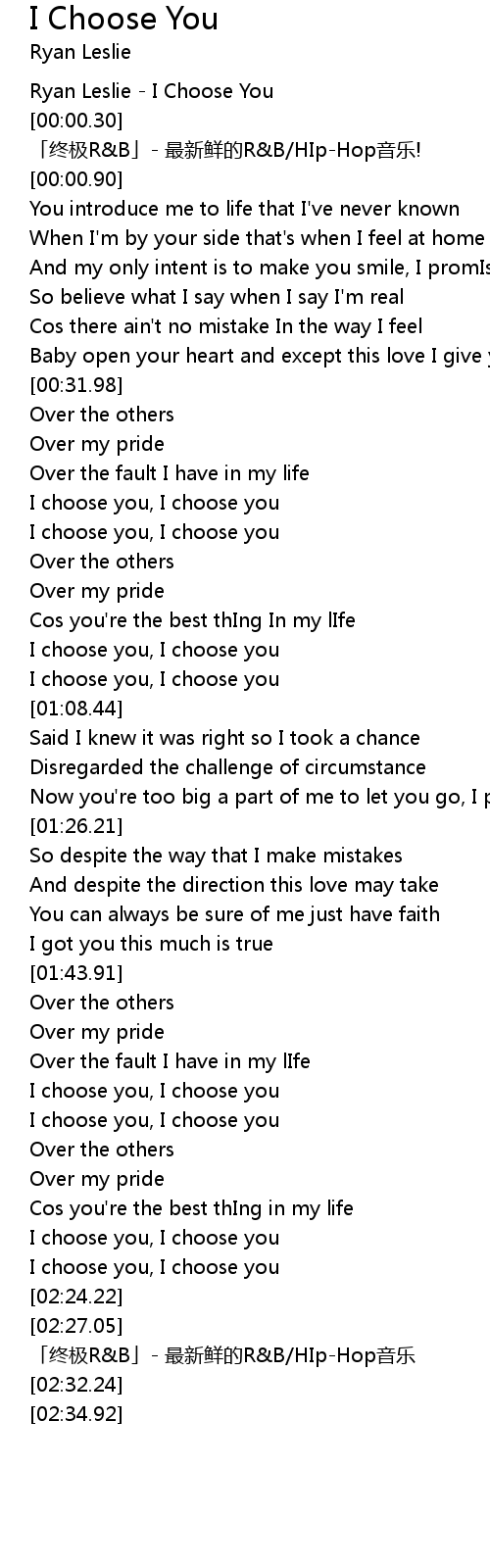 | [00:00.00] | Ryan Leslie - I Choose You |