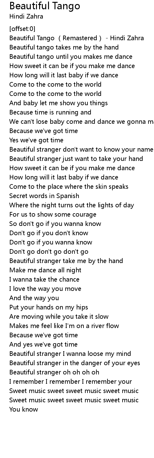 | [00:00.72] | Beautiful Tango Remastered Hindi Zahra |