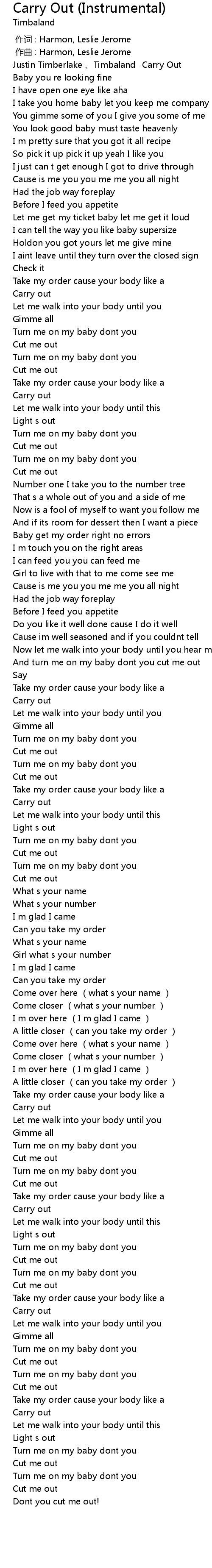 | [00:00.915] | Justin Timberlake Timbaland Carry Out |