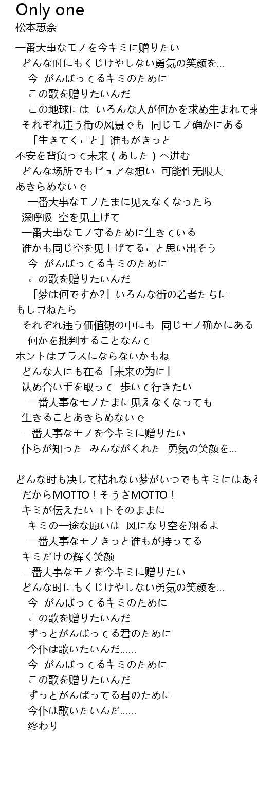| どんな场所でもピュアな想い 可能性无限大 あきらめないで | |