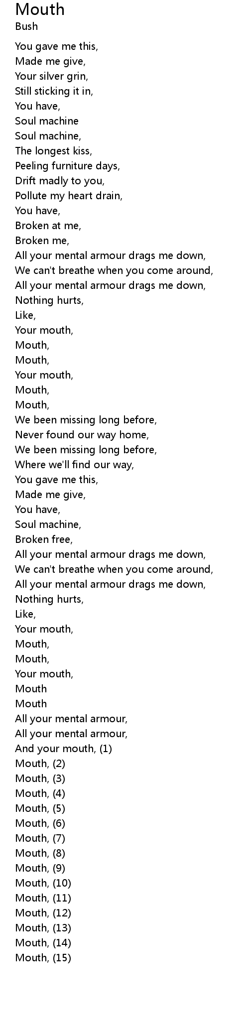 Mouth, (15) |