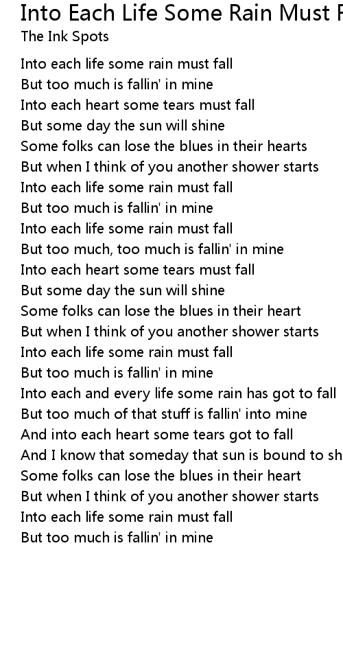 Into each and every life some rain has got to fall |