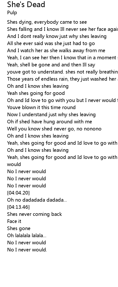 Yeah, shes going for good and Id love to go with you oh but I never would |