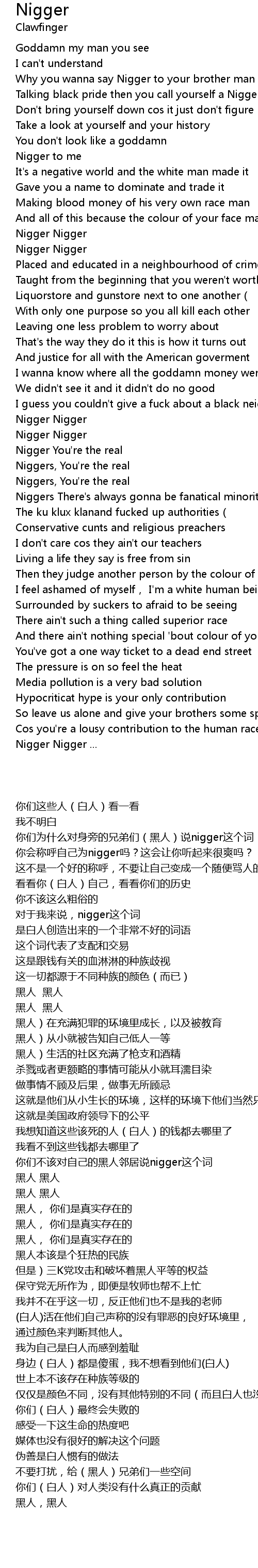 | [01:59.08] | Niggers, You're the real |