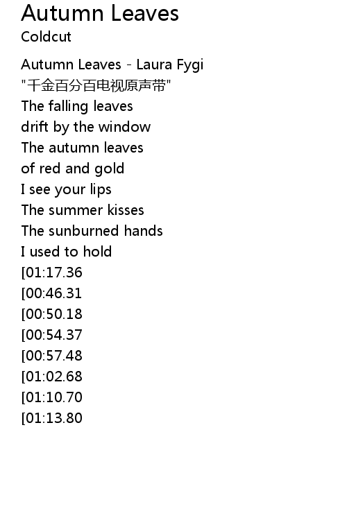| [00:00.00] | Autumn Leaves Laura Fygi |