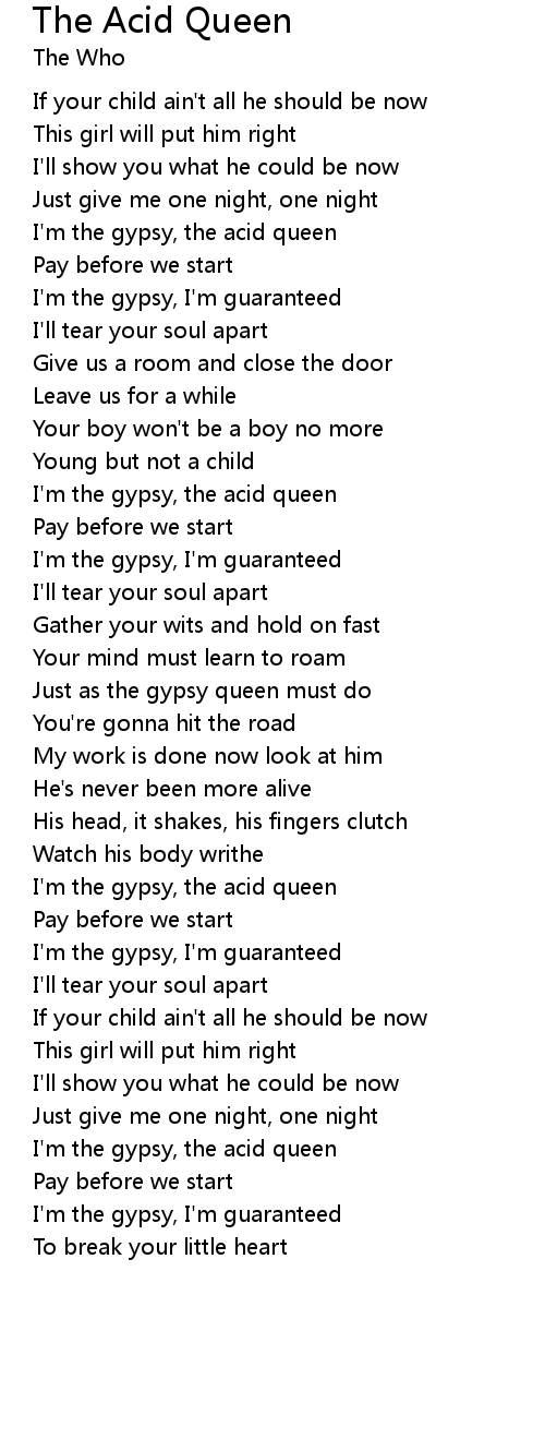 I'm the gypsy, the acid queen |