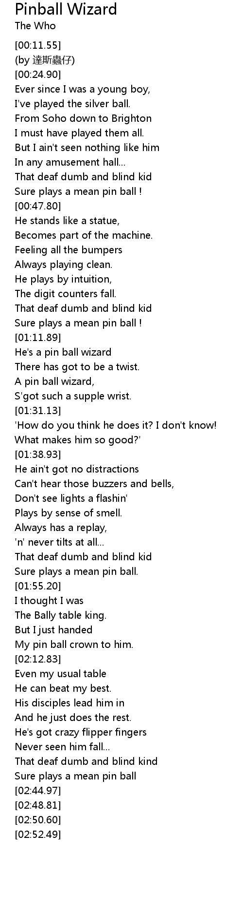 | [02:42.67] | Sure plays a mean pin ball |