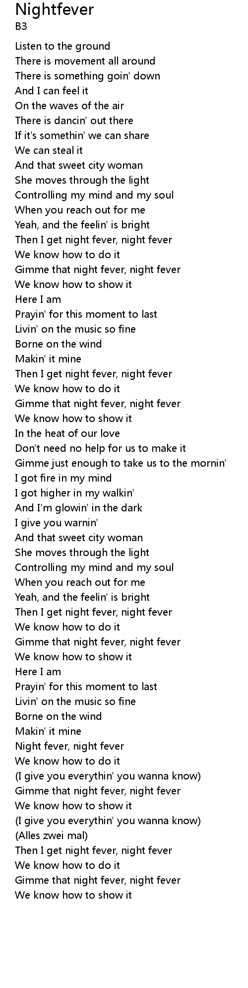 Then I get night fever, night fever |