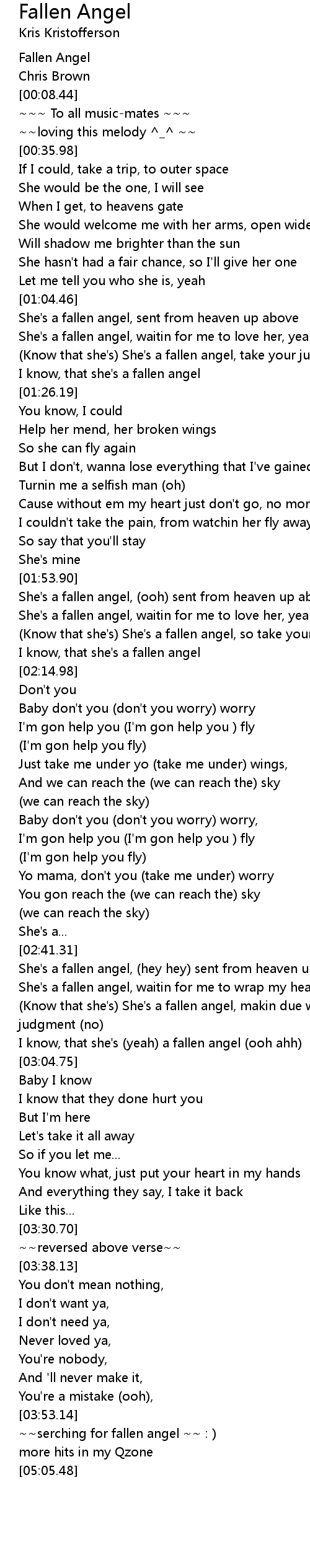 She's a fallen angel, waitin for me to wrap my heart around her, know |