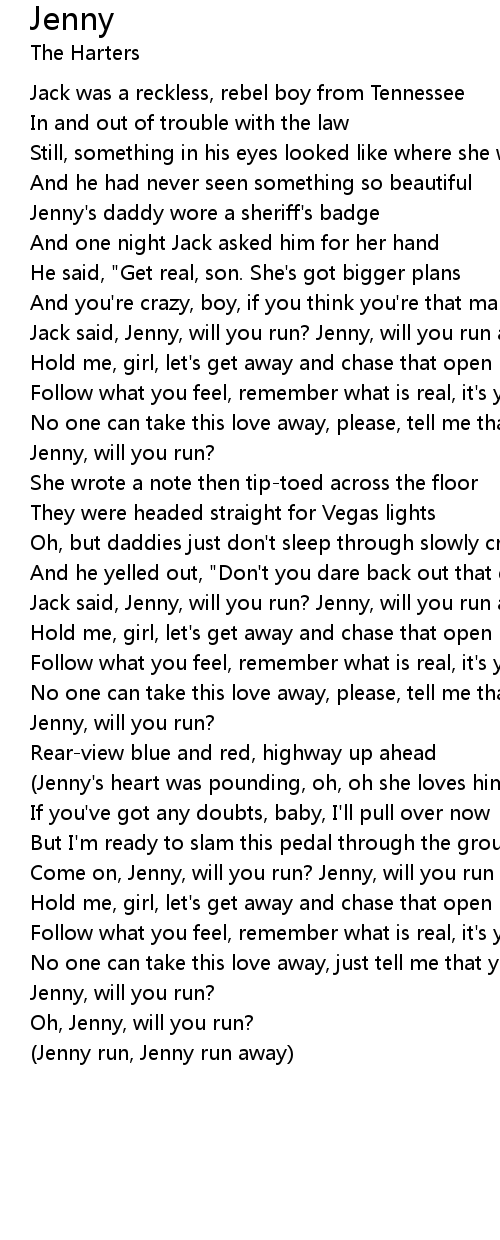 Jack said, Jenny, will you run? Jenny, will you run away with me?