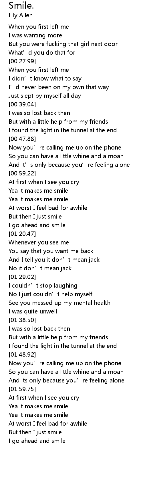 | [00:56.30] | And it’s only because you’re feeling alone |