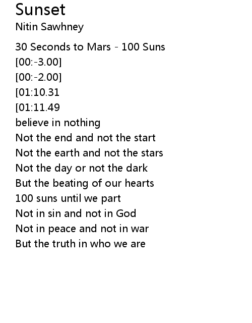 | [01:34.87][01:10.31][00:46.15][00:22.29][00:-1.00] |