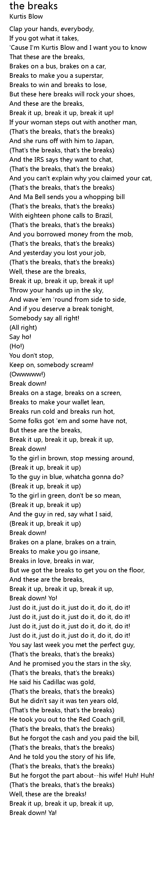 (That's the breaks, that's the breaks) |