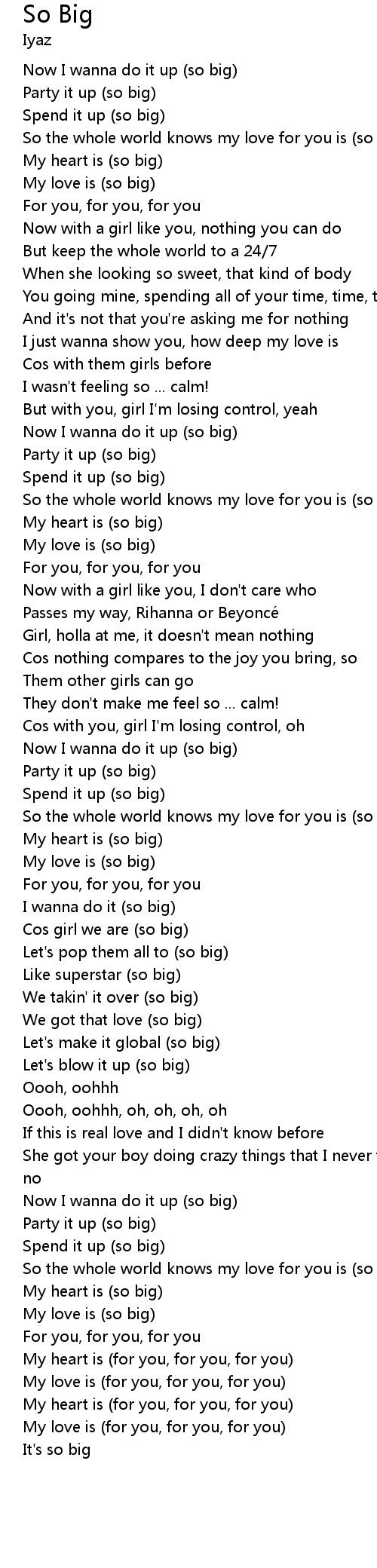| [00:13.43] | So the whole world knows my love for you is so big |