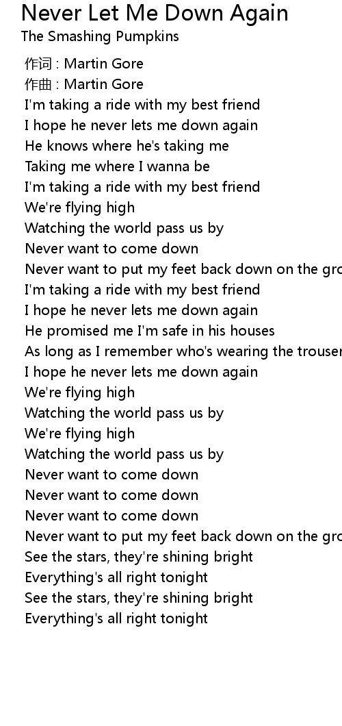 | [02:42.787] | Never want to put my feet back down on the ground |