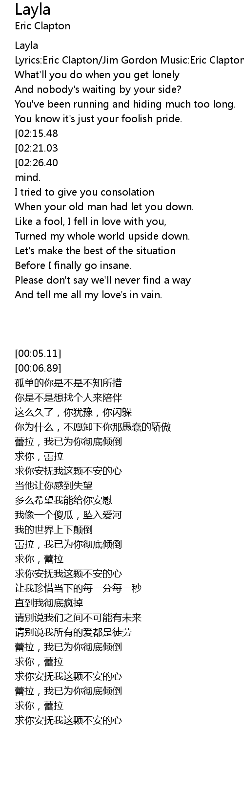Layla, darling won't you ease my worried mind. |
